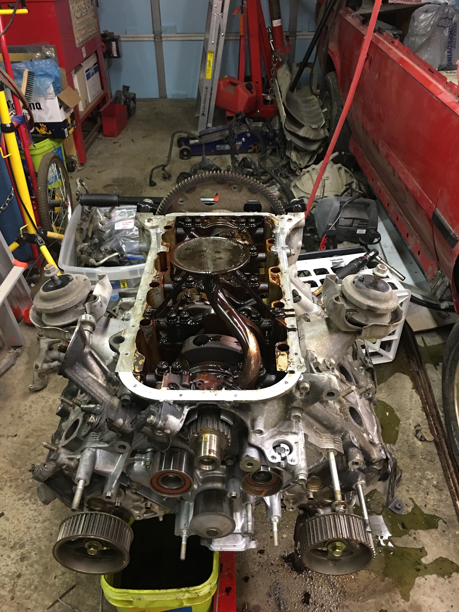 I pulled the Valve Covers and Oil Pan to begin the internal